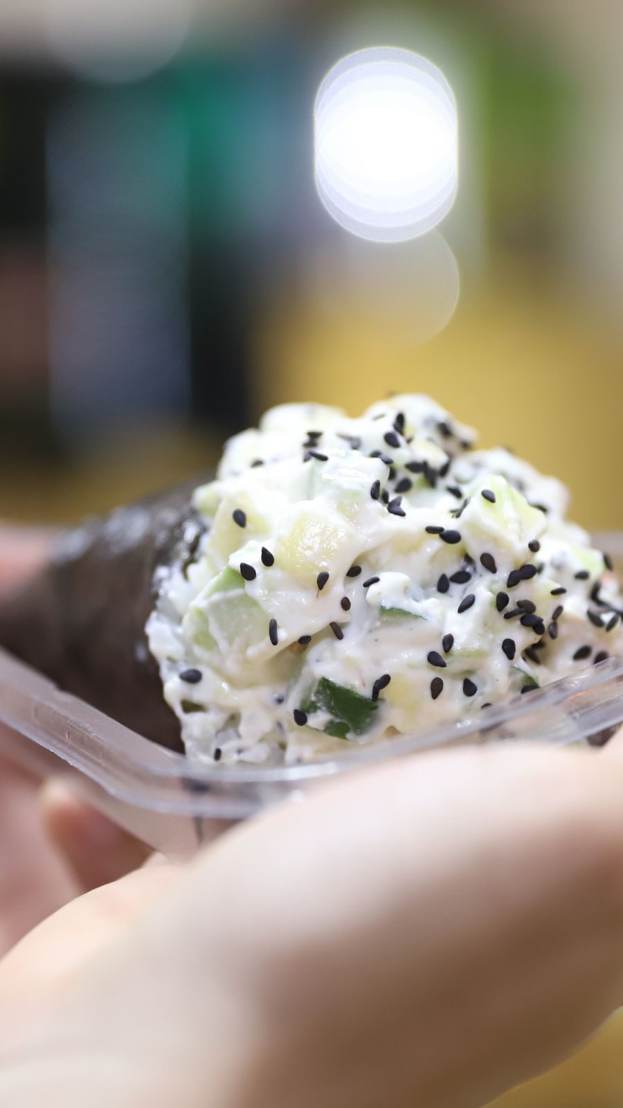 ARROZ, NORI, BROCOLIS EMPANADO, CREAM CHEESE VEGANO, (RICE, SEAWEED, EMPANED BROCCOLI, VEGAN CREAM CHEESE)